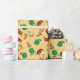 Smiling onions, carrots, green bell peppers and red chilli peppers on a yellow background.