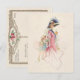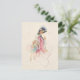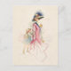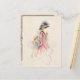 Pretty Victorian mother in blue gown and feathered bonnet smiling down at her daughter while out shopping. This lovely study is painted in pastel watercolor style. Back features editable message, text fields and optional floral graphic with custom complementary background.