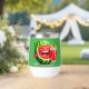Cute and colourful illustration of a cheerful watermelon-themed character holding a delicious fruit drink with straws.