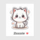 Smiling white kitten in kawaii chibi design with pastel tones, great for stickers, planners, and adorable stationery.