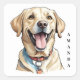 Smiling Yellow Labrador with Orange Collar Square Sticker