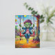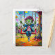 Smiling Zombie Kid on Swing with Party Flags Postcard