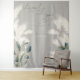modern, yet classic, touch to any wedding. A warm mushroom taupe background plays host to swaying cream coloured pampas grass and teal blue anthurium leaves. Happily Ever After written in modern calligraphy with the bride and groom's names and wedding date in modern contemporary style text . Perfect to use behind the bride and groom while they say their vows, as a backdrop for your guest book table or behind the wedding party table. This is part of a wedding stationery collection with matching wedding accessories. Original artwork created for the BarefootBride™ © by WhimsicalArtwork™