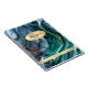 Personalise your name (or monogram) in black script with extra text on brushed gold metal oval and stripe on smokey teal, grey and gold ink abstract. Version 3.