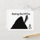 The next time you want to take a smoke break while on the job, just remember that smoking can kill you or in this case, definitely will kill you. LOOK UP! Featuring a stick man at the base of a mountain, taking a smoke break, with a car about to come down on his head.