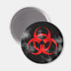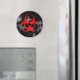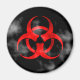 Black magnet with red biohazard symbol surrounded by puffs of smoke.