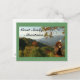 A black bear cub looks down from a post . In the background is a breathtaking view of the Great Smoky Mountains. Digitally manipulated.