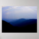 A beautiful photo taken from the Blue Ridge Parkway of the Great Smoky Mountains. Morning sun filters through the clouds fanning out over the mountains.