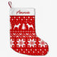 Smooth Fox Terriers Christmas Stocking. Red and white Christmas sweater style pattern with Smooth Fox Terrier silhouettes. Personalise this cute holiday stocking with your name or your dog’s name. A festive Nordic sweater style stocking to hang on your fireplace mantle. Everyone wants to be included in the seasonal festivities and our furry friends are no exception. Treat your four legged family member with a custom Xmas stocking. This cool Smooth Fox Terriers pattern Christmas stocking is great for both dogs and dog lovers. Visit Jenn’s Doodle World for even more cute stockings and pet lover’s holiday decor.