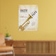 Customize this trumpet/music event advert poster with your info. Subtle musical notes and piano/keyboard keys are featured in the background