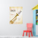 Customize this trumpet/music event advert poster with your info. Subtle musical notes and piano/keyboard keys are featured in the background.