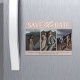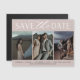 A modern save the date magnet designed to accommodate 3 vertical photos aligned side by side. "Save the date" appears across the top in chic block and script lettering, with your names, wedding date and wedding location beneath, along with your wedding website or additional details.