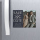 A modern save the date magnet designed to accommodate your favourite vertical or portrait orientated engagement photo. "Save the date" appears alongside your photo in chic block and script lettering, with your names, wedding date and wedding location beneath.