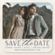 A modern save the date in a unique coaster format, designed to accommodate your favourite horizontal or landscape orientated full-bleed engagement photo. "Save the date" appears beneath your photo in chic block and script lettering, along with your names, wedding date and wedding location. Use the additional line of text to share your wedding website or additional details.