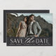 A modern save the date card designed to accommodate your favourite horizontal or landscape orientated full-bleed engagement photo. "Save the date" appears beneath your photo in chic block and script lettering, along with your names, wedding date and wedding location. Cards reverse to reveal additional save the date details.