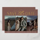 A modern save the date card designed to accommodate three vertical engagement photos aligned side by side. "Save the date" appears beneath your photos in gold foil block and script lettering, along with your names, wedding date and wedding location. Personalise the back with additional details, such as your wedding website.
