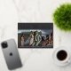 A modern save the date card designed to accommodate three vertical engagement photos aligned side by side. "Save the date" appears beneath your photos in rose gold foil block and script lettering, along with your names, wedding date and wedding location. Personalise the back with additional details, such as your wedding website.