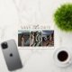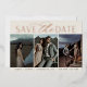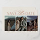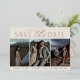 A modern save the date card designed to accommodate three vertical engagement photos aligned side by side. "Save the date" appears beneath your photos in rose gold foil block and script lettering, along with your names, wedding date and wedding location. Personalise the back with additional details, such as your wedding website.