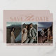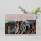 A modern save the date card designed to accommodate three vertical engagement photos aligned side by side. "Save the date" appears beneath your photos in gold foil block and script lettering, along with your names, wedding date and wedding location. Personalise the back with additional details, such as your wedding website.