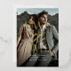 A modern save the date card designed to accommodate your favourite vertical full-bleed engagement photo. "Save the date" appears as a gold foil text overlay in the centre, with your names, wedding date and wedding location beneath. Personalise the back with additional details, such as your wedding website.
