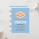 This cute and kawaii "S'more Fun" boy's 1st/first birthday invitation features a s'more with smiling face on a blue background. The reverse side features a white background with blue stripes. Personalise for your needs. You can find more matching products at my store.