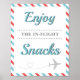 "Enjoy the in-flight snacks" food table sign that can be used for a travel/aeroplane themed baby shower, sprinkle, birthday or another occasion. This design will look best in 8" x 10" or 16" x 20". If you're looking for another size, please contact us to have it fitted correctly.