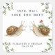 Add a charming touch to your wedding mail with this vintage-inspired “Snail Mail” save the date sticker. Featuring two hand-painted watercolor garden snails gently toasting tiny martinis, this design blends whimsical romance with a soft storybook aesthetic.