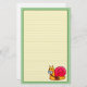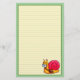 Stationary featuring a happy red and yellow snail clutching an envelope sealed with a heart in its mouth. He carry's a postbag and is ready to carry your message.