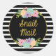 Snail Mail Sticker - black and white stripes with floral and gold glitter!!