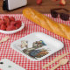 A whimsical snail dressed as a postal worker, complete with a blue cap adorned with a badge, large glasses, and a backpack full of mail