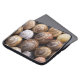 This design features an image of snail shells arranged in rows and columns. The particular type of snail that sheds these shells is the "Arianta arbustorum", sometimes known in English as the "copse snail". The shells are beautiful shades of light and dark brown.