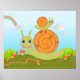 All kids love animals! And some like very small animals! What could be more fun than having a snail themed birthday party? Or getting a snail birthday gift? If your child loves bugs, this product will make a fun surprise for a special day. This illustration features some cute smiling and friendly snails, mushrooms and green fields with flowers. A celebration of Nature’s tiny miracles!