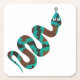 Snake Brown and Teal Print Silhouette Square Paper Coaster