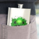 The product is a good size and came exactly as it was pictured. The lid is not attached to the flask, which could be dangerous on drunken nights... The print came out surprisingly well and looks very sharp. Would definitely recommend.