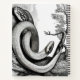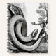 Two snakes coiled around a tree in a black and white sketch styled artwork