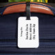 This was purchased as part of a 40th Birthday present for my nephew who is going to Vegas. It is made of high quality, very study and we decided only to put his name on the back of the tag, but you can add a full address if you so wish.