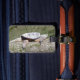 A photograph of a large snapping turtle basking on a log adorns this customisable luggage tag!