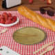 Snare drum head with wooden drum sticks. Well played. Musicians, percussionists, the basic drum, Use for Marching Band drum line, or as a Christmas theme. Snare on back side. See our matching paper napkins and other party supplies in our store! Visit our store for more of our design series.