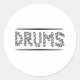 Snare drums arranged in a pattern to spell the word Drums. Design by Audio Cloth. On a light or dark backgrounds.