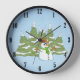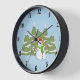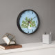 The size of the clock is dramatic and the abstract alcohol ink design is soothing and intricate at the same time.  I chose the black frame that adds pop to the blue and gold design.  The gold printing would be better in a slightly darker or larger font.  I love it and I’m looking for just the right place in ny new apartment.  I would recommend this clock for a personal gift or a present.  I feel that the quality is excellent for the money!  I’m a bit of a clock nut so I’m pretty particular about my purchases.  The clock is larger in diameter than many if the clocks I have, so it stands out very well. I think a slightly darker printing color and a moderately larger size would best suit a professional decor or add more impact in a work place item.