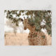 Animal card showing a snoopy giraffe. The giraffe (Giraffa camelopardalis) is an African even-toed ungulate mammal, the tallest living terrestrial animal and the largest ruminant. Its species name refers to its camel-like shape and its leopard-like colouring. Its chief distinguishing characteristics are its extremely long neck and legs, its horn-like ossicones, and its distinctive coat patterns. The giraffe's scattered range extends from Chad in the north to South Africa in the south, and from Niger in the west to Somalia in the east. Giraffes usually inhabit savannas, grasslands, and open woodlands. Their primary food source is acacia leaves, which they browse at heights most other herbivores cannot reach.
