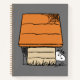 This Peanuts design depicts Snoopy, resting partially inside his iconic doghouse, which has been decorated for Halloween. The roof of the doghouse is painted a vibrant orange, and there are spooky cobwebs adorning the corners both on the roof and on the walls, adding to the eerie, festive atmosphere. Snoopy, peeking out from the bottom right, seems to be keeping watch with a calm, almost sleepy expression, adding a sense of quiet Halloween charm to the scene.
