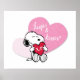 Peanuts Valentine's Day | Check out Snoopy holding onto a red heart, with pink hearts in the background that read: "hugs & kisses".