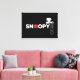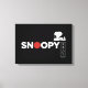 Snoopy relaxes against a rock on top of his name in English and Japanese.