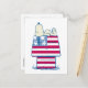 Celebrate Independence Day with this festive Peanuts postcard featuring Snoopy lounging on his doghouse adorned with patriotic decorations. Perfect for sending holiday greetings, sharing your love for the 4th of July, or collecting as a keepsake, this postcard captures Snoopy's playful and patriotic spirit.
