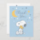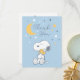 Send a truly personal note of thanks with this charming Peanuts Snoopy and Woodstock thank you postcard. The front features the heartwarming "Over the Moon" illustration with Snoopy embracing Woodstock, set against a calming light blue celestial background. Unlike a standard card, the back is designed in a classic postcard style, featuring a designated area for a handwritten message and address, making it easy for parents to quickly pen a personal, heartfelt note to each guest after the gender-neutral or baby boy baby shower. This is a simple, beautiful, and efficient way to send gratitude.