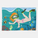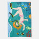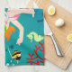 This is an illustration that features a vibrant underwater scene with a girl swimming and snorkelling close to tropical fish, coral reefs, and other sea life. Every summer day is a party for kids on the beach. The seaside is the place to go and have fun with friends, swimming and diving, maybe celebrating their birthday too! Don't forget the towel, the hat, and the sun protector! This beach towel will look good on any beach house kitchen It's a nice Birthday Gift to a surfer but also a swimmer, a diver, any kid who is fond of the sea, or a girl that was born in the summertime.