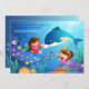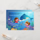 Your guests will delight with the colours and excitement of this darling invitation. The design features a vibrant underwater scene with two snorkelling tots playing with a dolphin and fish. The card is easy to customise with your wording, font, font colour and choice of six paper types.