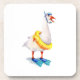 Watercolor painting of White Goose in flippers with swim goggles and snorkelling mask.