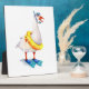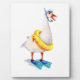 Watercolor painting of White Goose in flippers with swim goggles and snorkelling mask.